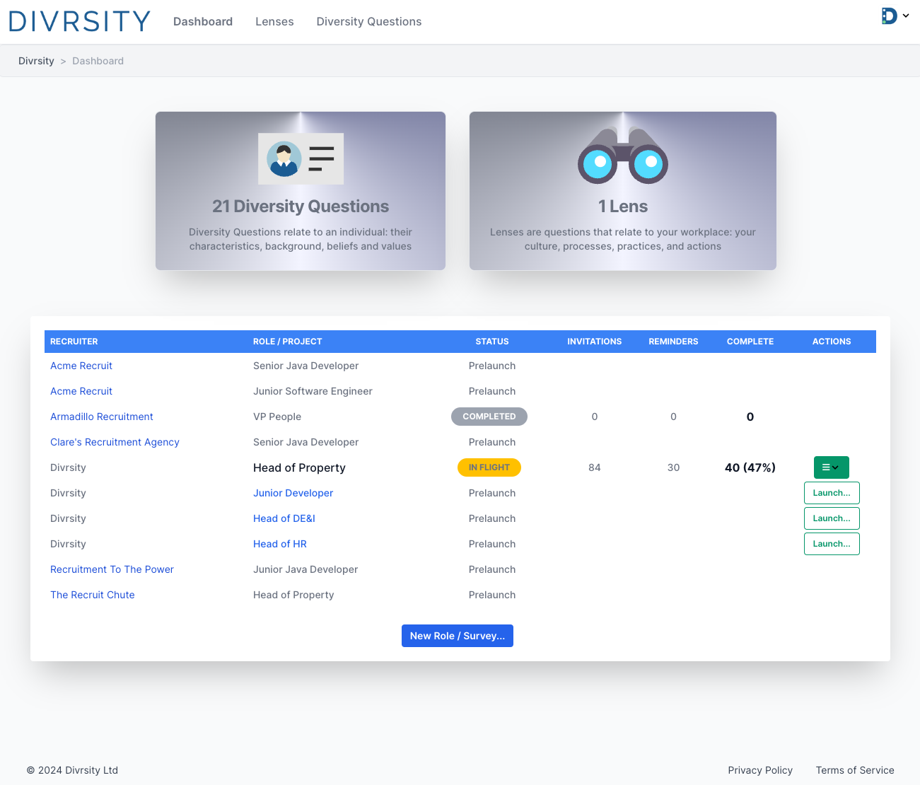 We're super-proud of the feature richness of the Divrsity platform and excited about the opportunity to bring our data-driven D&I capabilities to a wider audience. If you're a recruitment agency or in-house recruitment team please get in-touch: feedback is a gift and this is a new space for us so we're open to doing whatever is necessary to make this work for your use case.